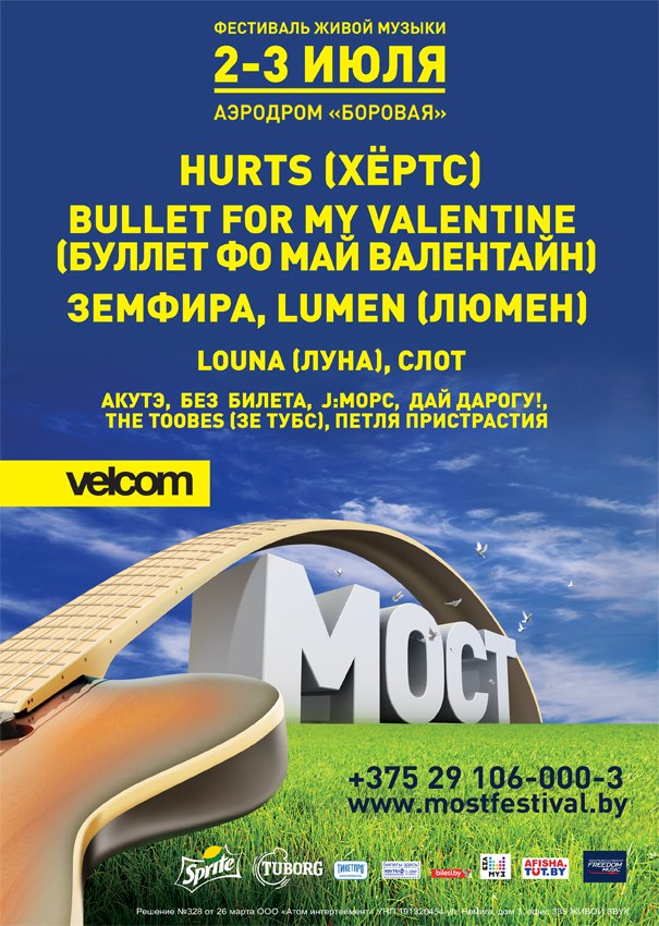 Накануне Национального дня Независимости Беларуси впервые в современной истории белорусской музыки состоится полноценный open-air фестиваль живой музыки «МОСТ». Двухдневный музыкальный марафон под открытым небом пройдет 2 и 3 июля на аэродроме «Боровая».