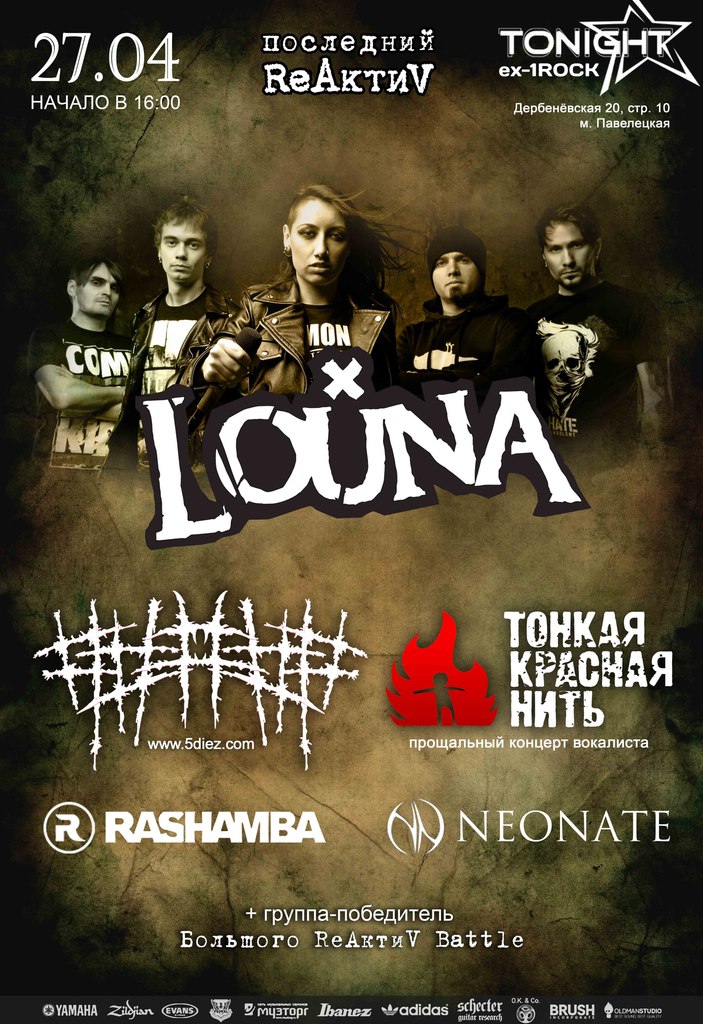 27 апреля LOUNA, #####, ТОНКАЯ КРАСНАЯ НИТЬ, RASHAMBA и NEONATE с победителями Большого ReAктиV Battle на главном событии года — Последнем Реактиве!
