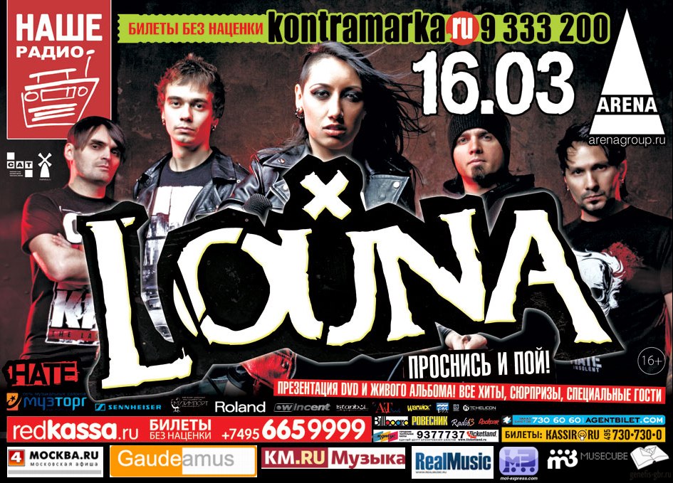 Итак, 16 марта в клубе «ARENA Moscow»(Москва) и 17 марта в клубе «Космонавт» (Санкт-Петербург) , все посетители больших сольных концертов LOUNA смогут первыми приобрести и оценить новый концертный DVD и альбом «Проснись и пой!» (будет открыта специальная точка продаж дисков и атрибутики), а также посмотреть полноформатное рок-шоу группы, в котором по традиции не обойдется без сюрпризов: в выступлении примут участие специальные гости из дружественных коллективов, которые поднимутся на сцену, чтобы сыграть или спеть вместе с LOUNA. Как всегда будет жарко. Не пропустите!